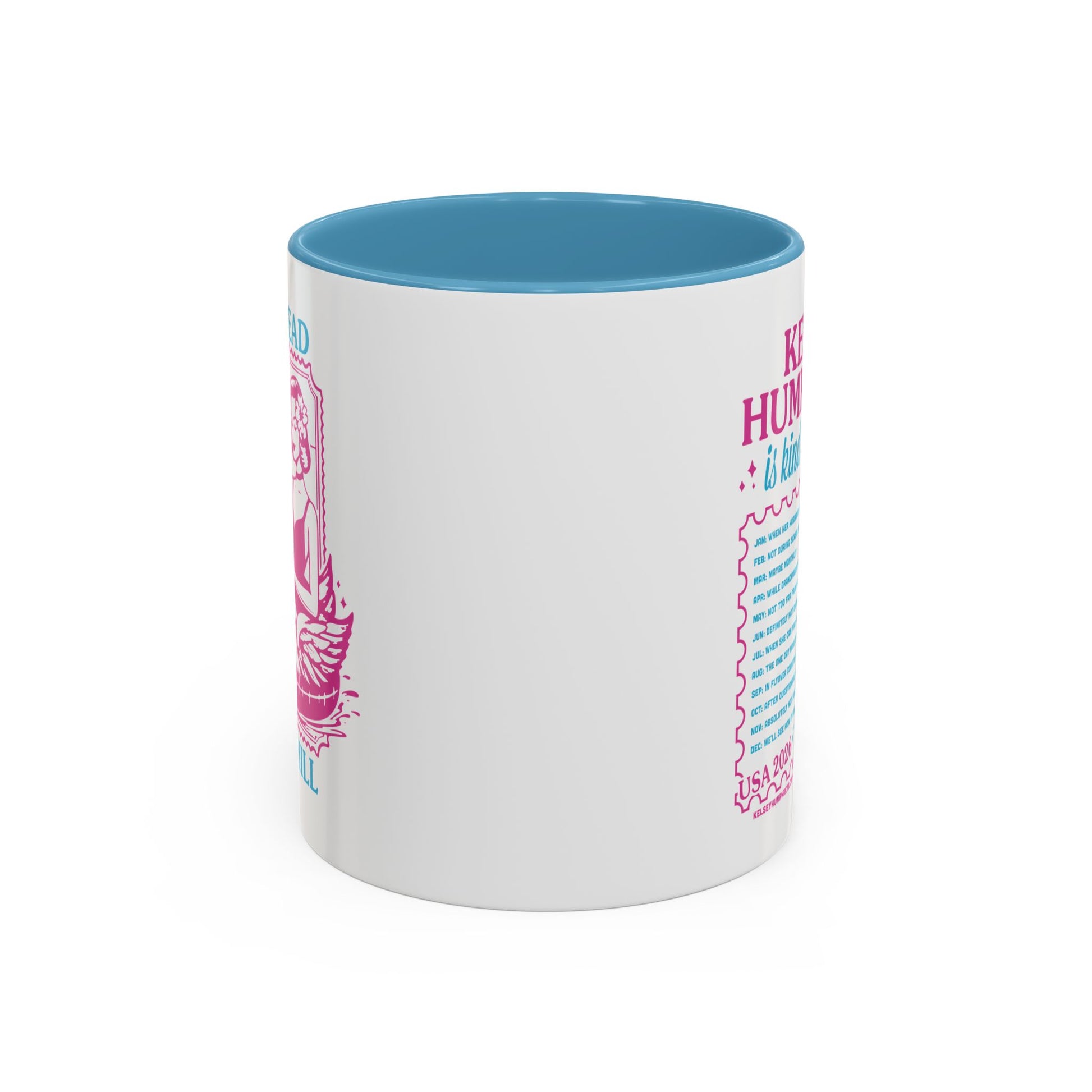 This vibrant accent coffee mug blends retro fun with modern durability. Bright cyan interior and handle frame a glossy white exterior where bold pink typography and playful vintage graphics celebrate a name in eye-catching contrast. It feels lively in your hands — substantial but smooth — and adds a cheerful pop to a morning routine, a studio desk, or a cozy chat over coffee. The printed artwork wraps cleanly so the design reads clearly whether you're left- or right-handed. Built to handle daily use, it keeps colors vivid cup after cup and brings a little personality to everyday moments.